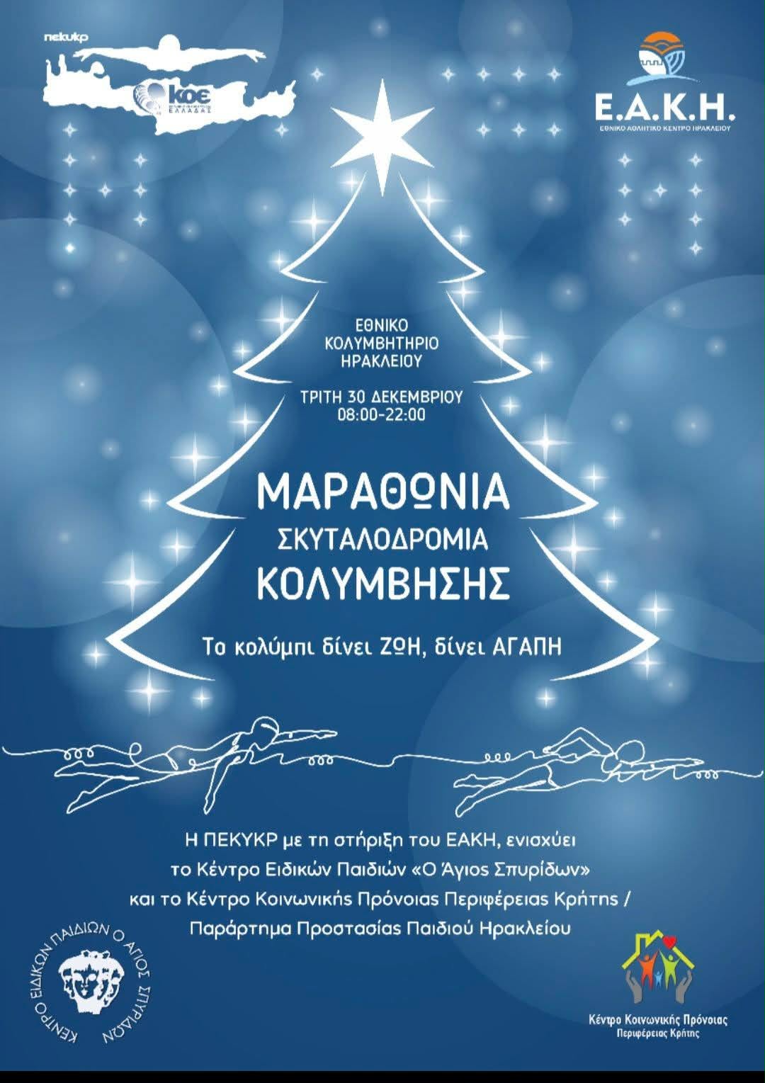 Η Περιφερειακή Επιτροπή Κολύμβησης Κρήτης και το Εθνικό Αθλητικό Κέντρο Ηρακλείου, θα πραγματοποιήσουν, την Τρίτη 30/12/2025 (08:00 - 22:00), Μαραθώνια Σκυταλοδρομία Κολύμβησης, στο κολυμβητήριο του ΕΑΚΗ.